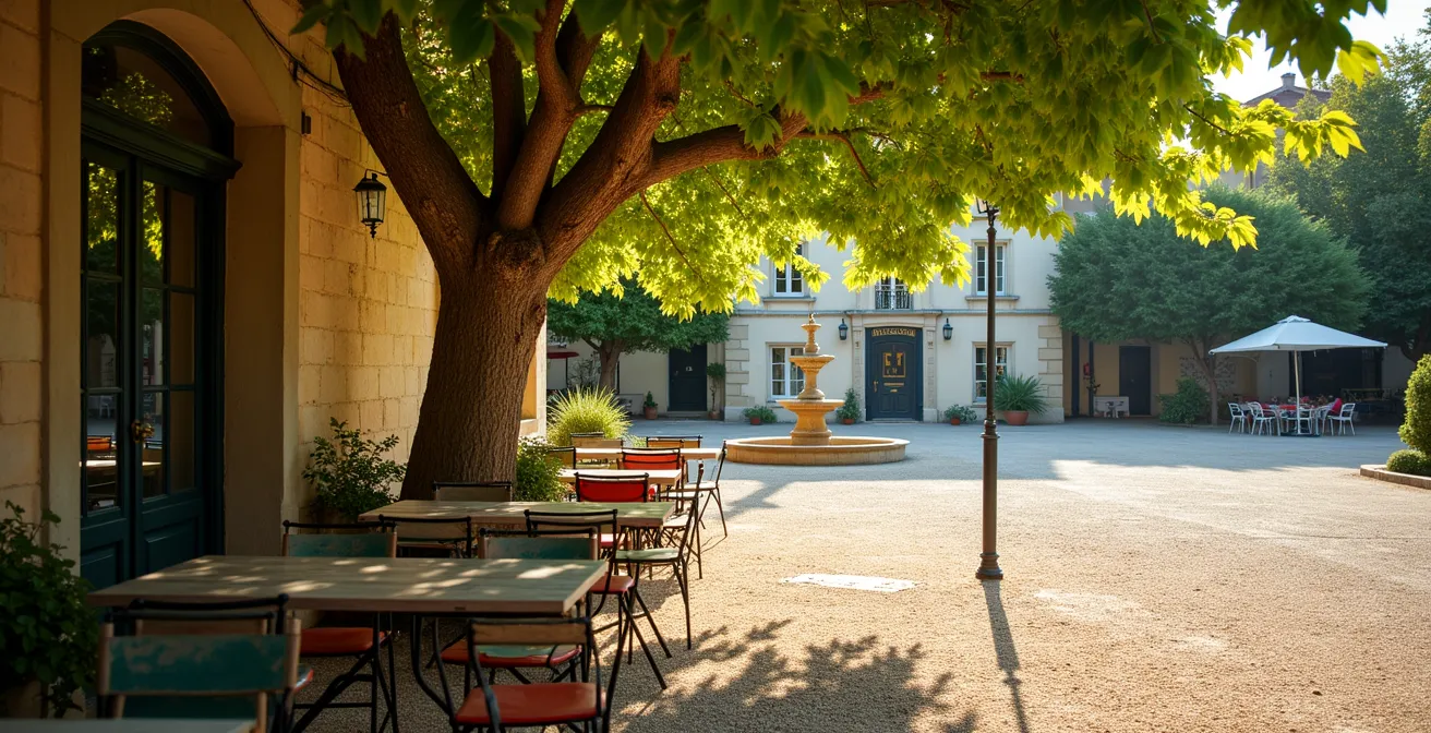 Le choix de la terrasse est un art. Et dans cet art, la nature de l’ombre est un critère discriminant. D’un côté, le parasol publicitaire, aux couleurs criardes d’une marque de boisson anisée. De l’autre, le platane centenaire, dont le feuillage filtre la lumière et crée une pénombre mouvante. La différence est bien plus qu’esthétique, elle est sensorielle et révèle l’histoire du lieu.